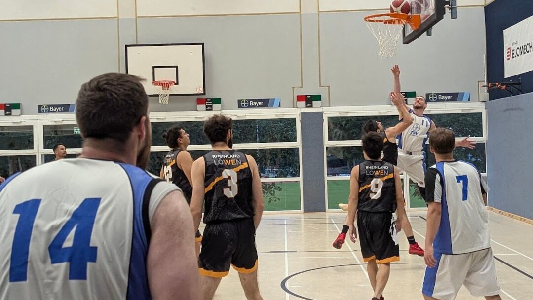 Obwohl die Gäste die ersten drei Punkte machten, bestimmte Dormagen das erste Viertel. Mit der Zone Defense kam Jüchen nicht gut zurecht. Dafür fehlten ihnen die langen Leute. Da war der TSV besser aufgestellt. Mit Leo und Stefan, sowie Lennard spielte Bayer mit drei Großen. Hinzu kam Luke, der immer wieder gut zum Korb zog. Damit gewann Dormagen die ersten zehn Minuten 22:7. Im zweiten Viertel griff die Defense des TSV nicht mehr so gut zu. Sie ließ 25 Punkte in den eigenen Korb fallen und konnte einen Spieler der Gäste nicht unter Kontrolle halten. Er machte in dem Viertel 20 Punkte, seiner insgesamt 42 Punkte. Im Angriff gelang vieles oftmals zu leicht. Es gab einige Einzelaktionen der TSV Herren, sodass das Mannschaftsspiel ins Hintertreffen geriet. Trotzdem blieb das Team mit 30 Punkten sehr erfolgreich. Zur Halbzeit führte Bayer mit 52:32. Nach der Halbzeit stellte Jüchen auf Zone Defense um und Dormagen auf Manndeckung. Auf der einen Seite war es für Dormagen günstig, da nun die Werfer besser ins Spiel kamen. In den ersten Minuten fielen drei Dreier von Luke, Leo und Peter. Doch die Defense hatte weiterhin Probleme. Die schnellen, wendigen Guards von Jüchen machten der TSV Abwehr zu schaffen. Obwohl Vorsprung des TSV zwischenzeitlich auf 27 Punkte anwuchs, blieben die Gäste auch dieses Viertel dran. Mit 24:21 war es das knappste Viertelergebnis. Im Schlussviertel kam dann endlich die erhoffte Dominanz des TSV hervor. In den ersten vier Minuten folgten wieder drei Dreier. Die Führung stieg auf 32 Punkte an und erreichte in der 36. Minute mit 34 Punkten ihren Höhepunkt (91:57). Zeitweise resignierten die Gäste und liefen nicht in die Defense zurück. Damit legte Dormagen 2 einen perfekten Start 2025/2026 hin und führt für kurze Zeit die Tabellen an. Nach der nun etwas längeren Pause wegen der Herbstferien und Spielverlegungen haben die Herren ihr nächstes Spiel am 07.11.2025 um 20.30 Uhr in der TSV Halle 2.